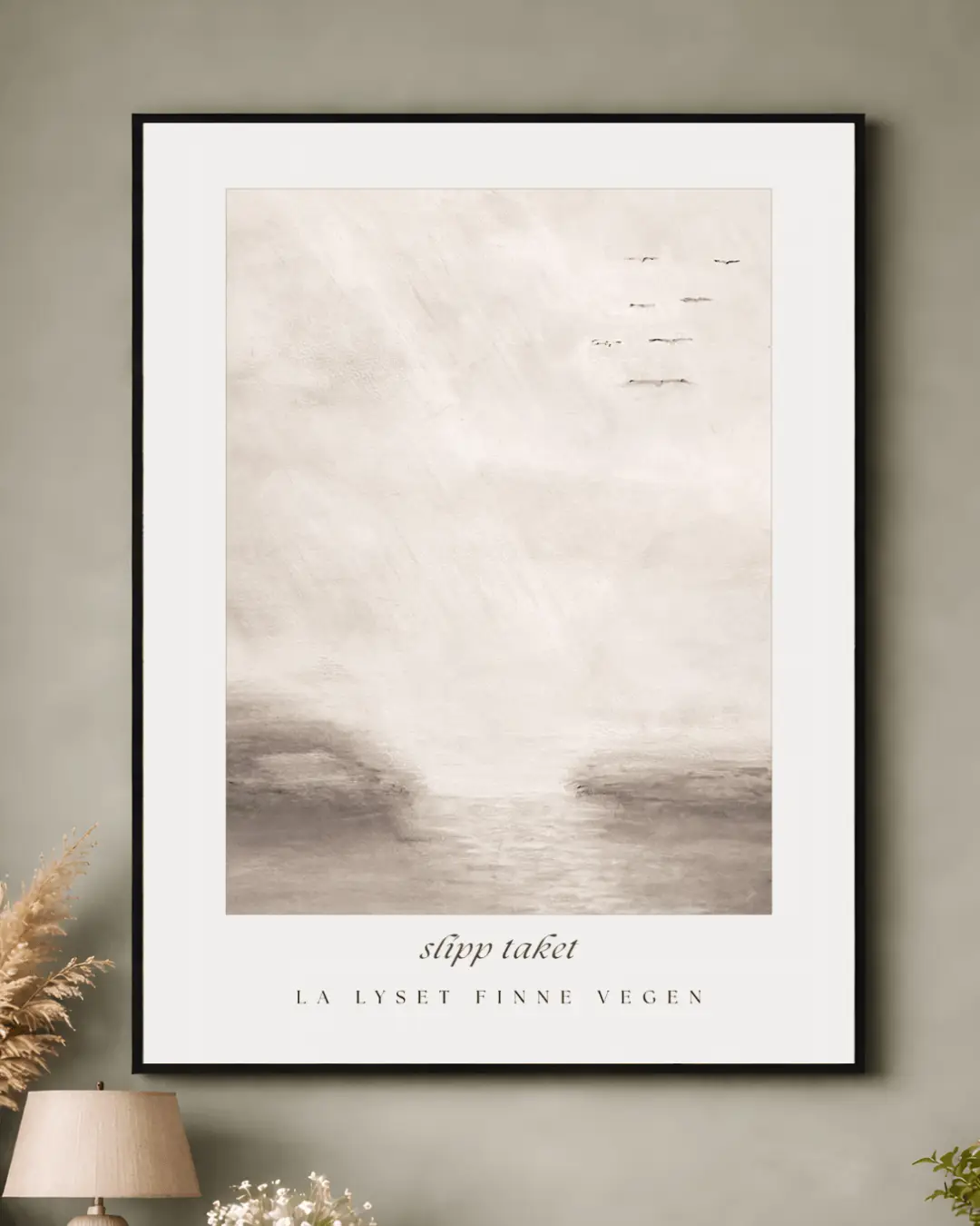 Slipp taket – en visuell påminnelse om å gi slipp på det som tynger, og stole på at lyset finner veien videre. Et bilde med dybde, enkelhet og mening.